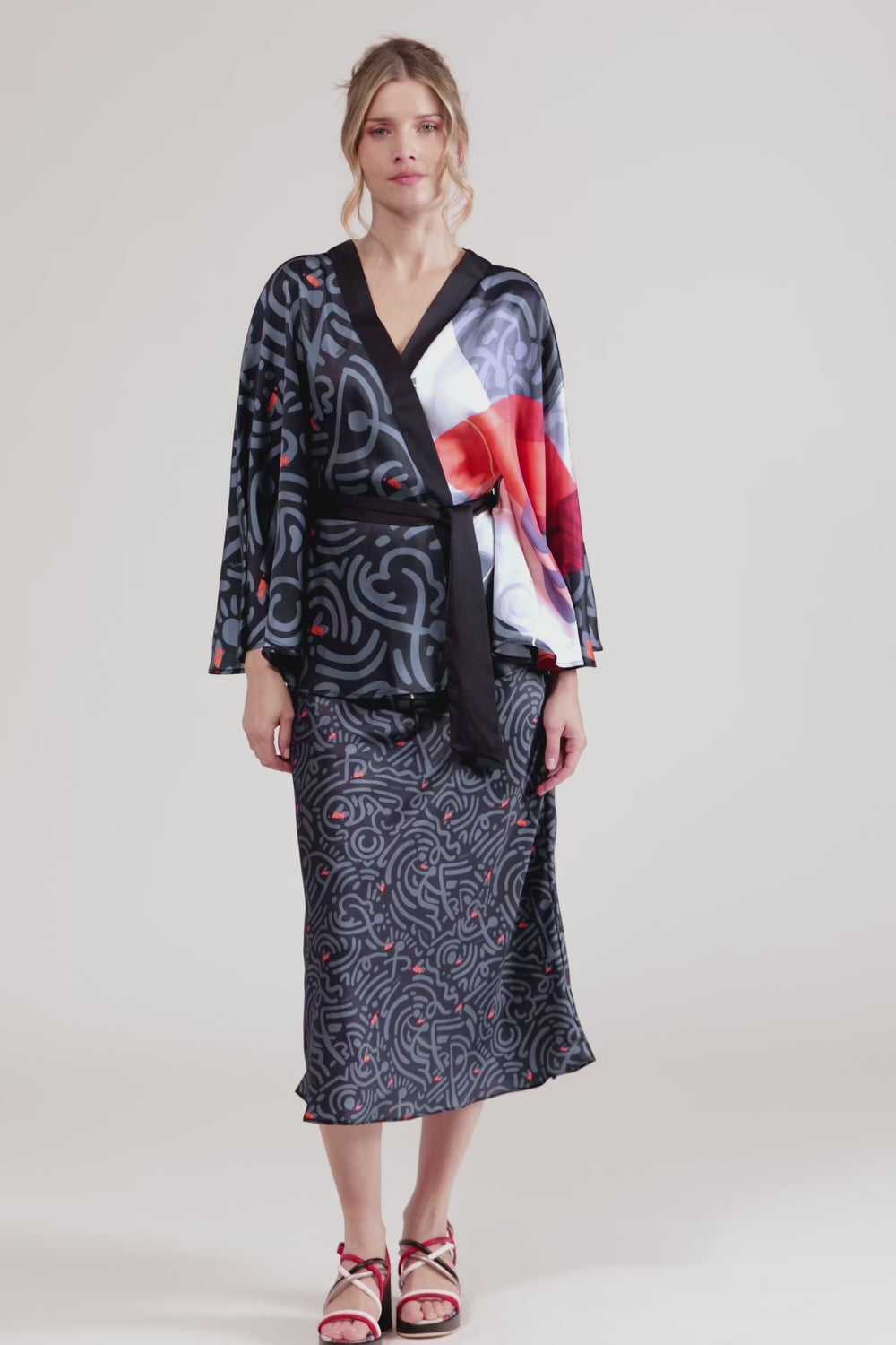 Fluid printed kimono