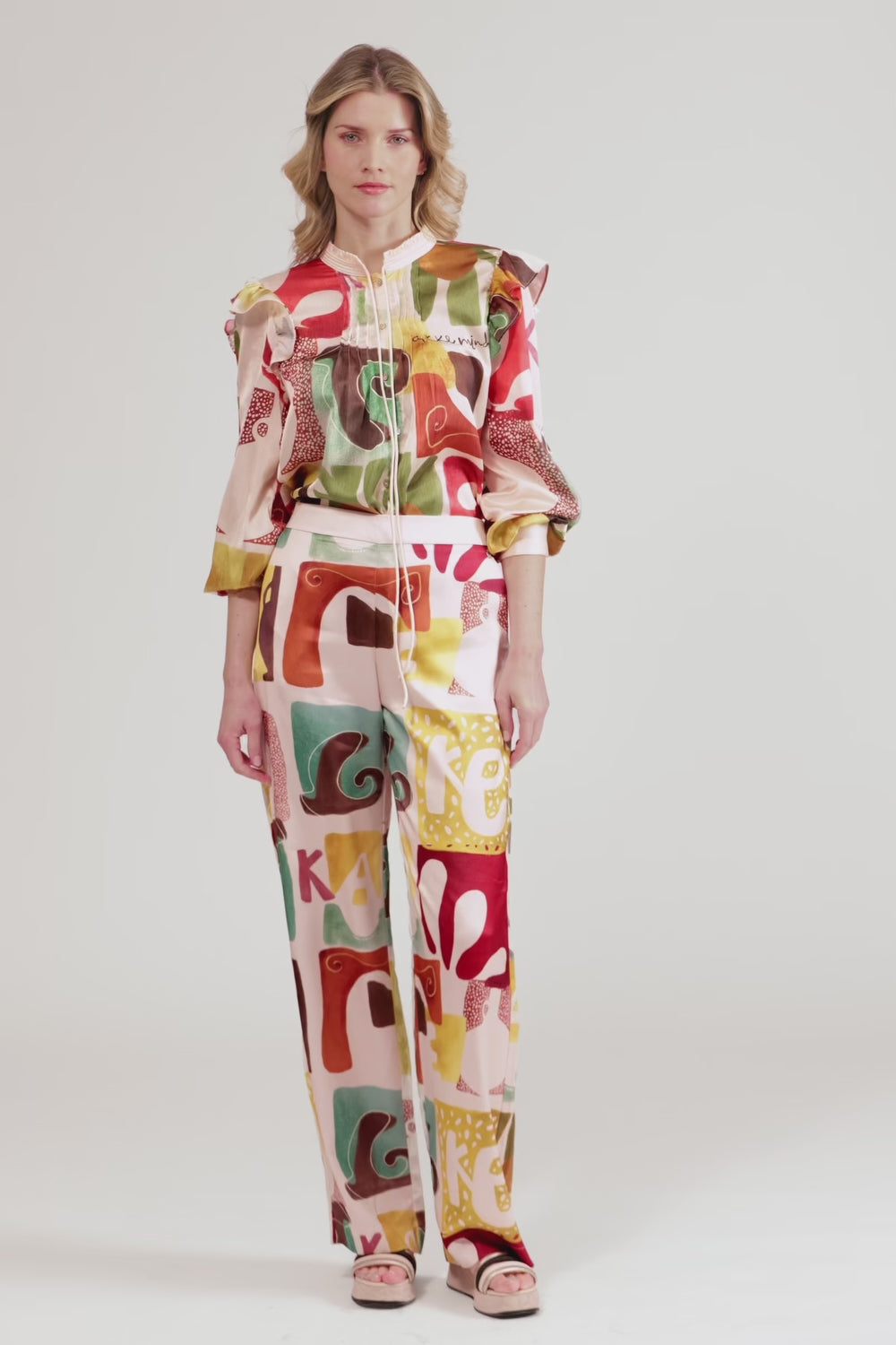These straight-leg trousers with the Amphora print are one of those pieces that add effortless style. Their design blends comfort and originality, with a fluid cut that flatters and moves with you. Perfect for day-to-day wear or special occasions, you can pair them with basic tees, shirts or – even better – with the matching blazer, creating a total look that won’t go unnoticed. Versatile, comfy and with an artistic twist, these trousers are made to inspire.
